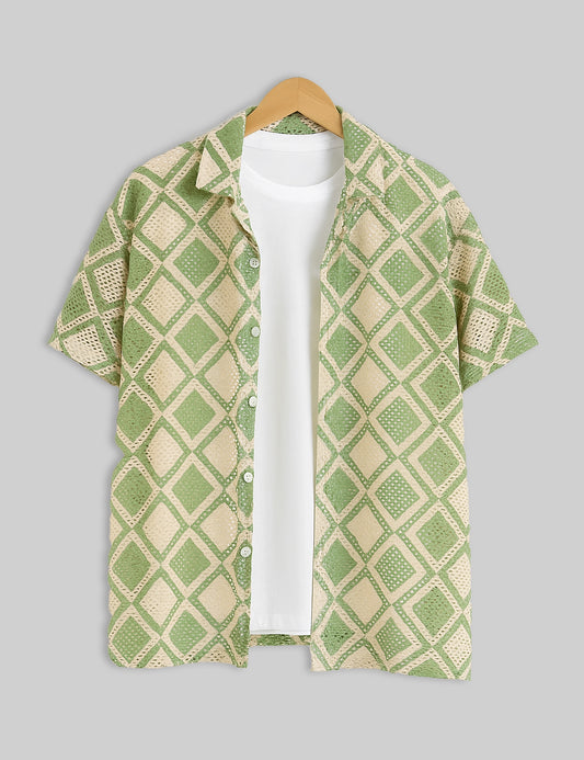 Green Diagonal Design | Men's Half Sleeve Cotton Shirt - Stylish & Comfortable Casual Wear