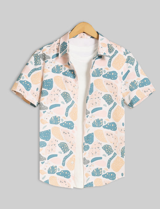 White Leaf Design | Men's Half Sleeve Cotton Shirt - Stylish & Comfortable Casual Wear