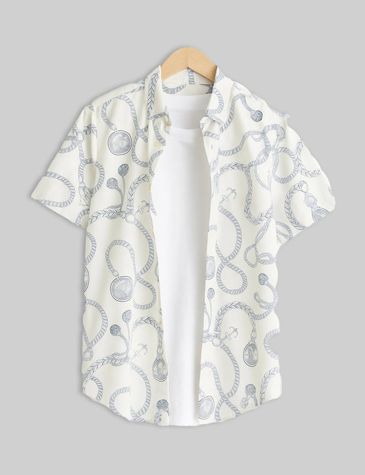White Rope Design | Men's Half Sleeve Cotton Shirt - Stylish & Comfortable Casual Wear