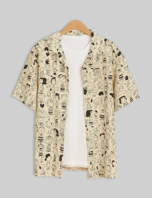 Cream Cartoon Design | Men's Half Sleeve Cotton Shirt - Stylish & Comfortable Casual Wear