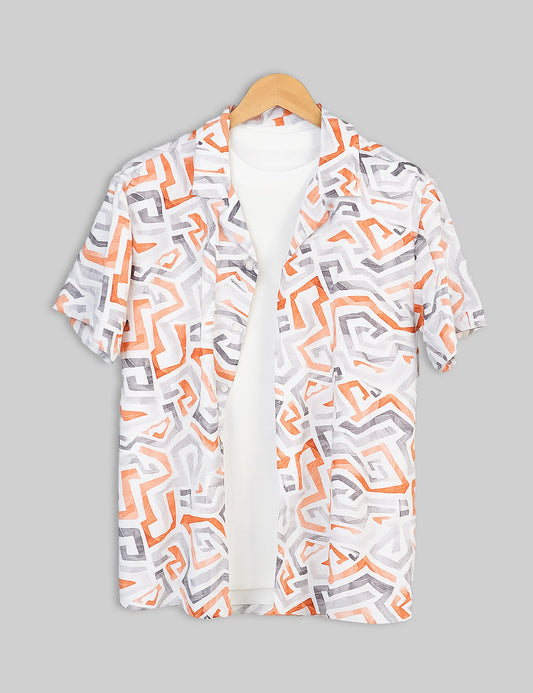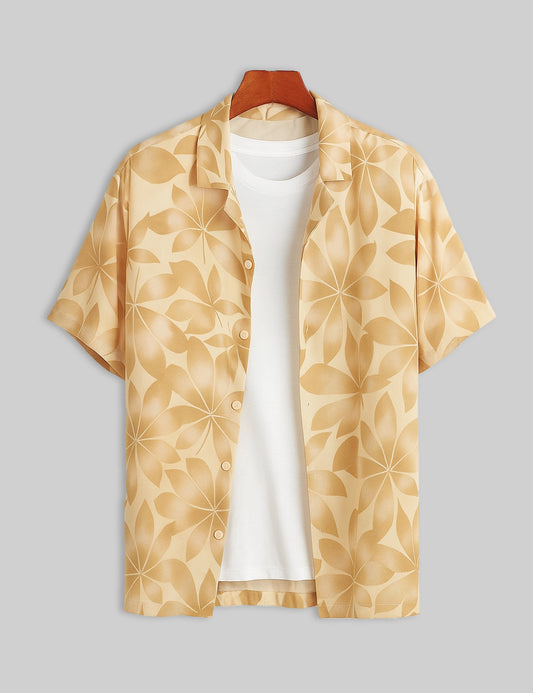Orange Leaf Design | Men's Half Sleeve Cotton Shirt - Stylish & Comfortable Casual Wear