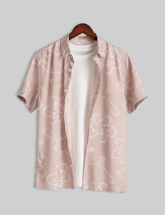 Floral Outline Design | Men's Half Sleeve Cotton Shirt - Stylish & Comfortable Casual Wear