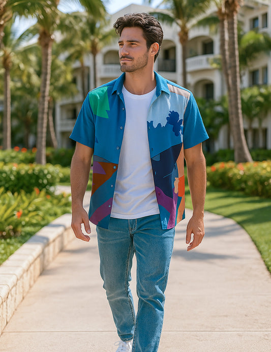 Beach Design | Men's Half Sleeve Cotton Shirt - Stylish & Comfortable Casual Wear