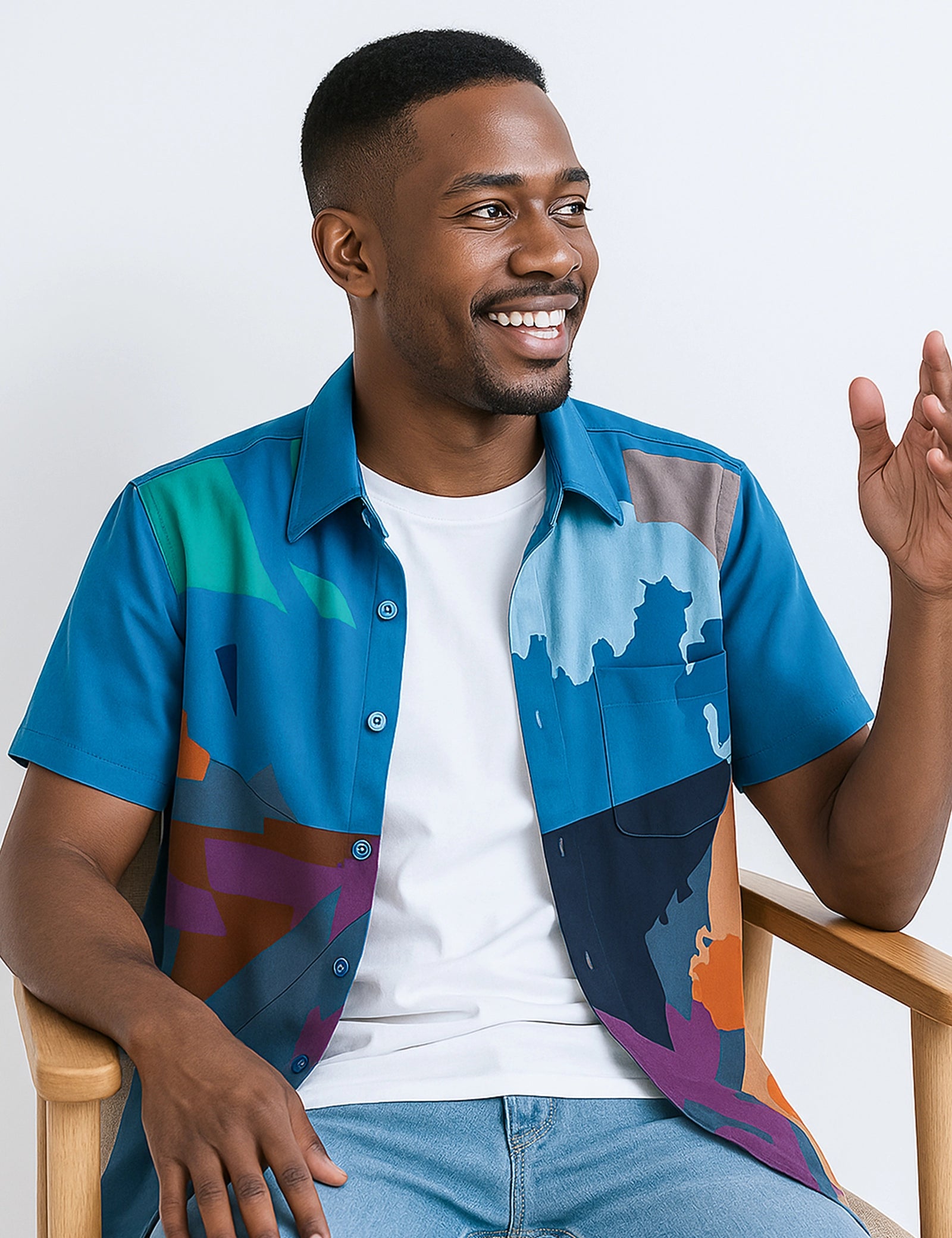 Beach Design | Men's Half Sleeve Cotton Shirt - Stylish & Comfortable Casual Wear
