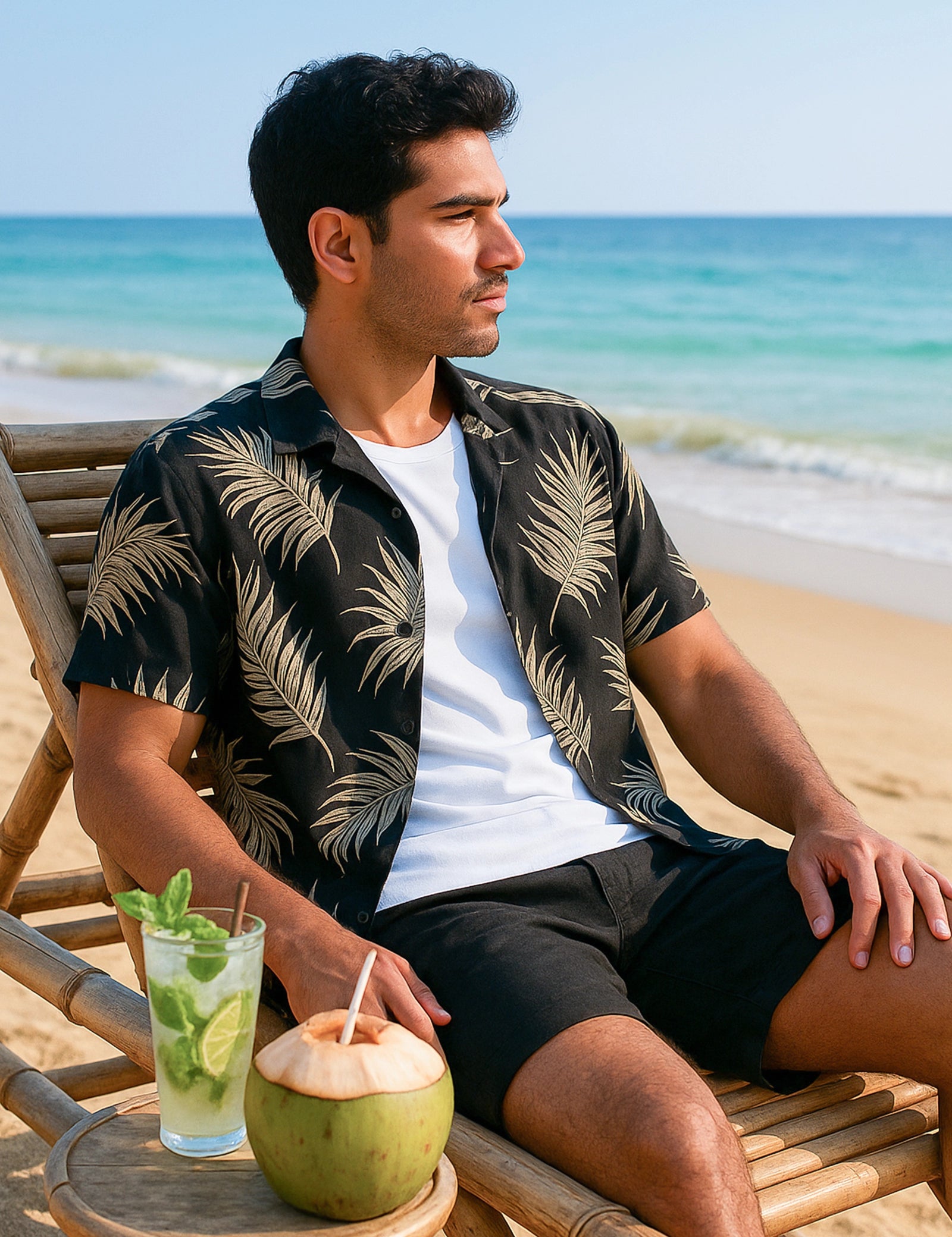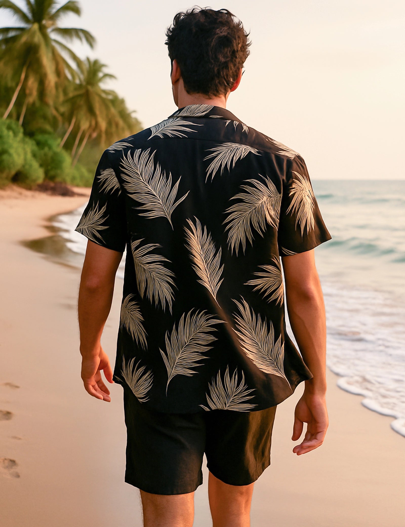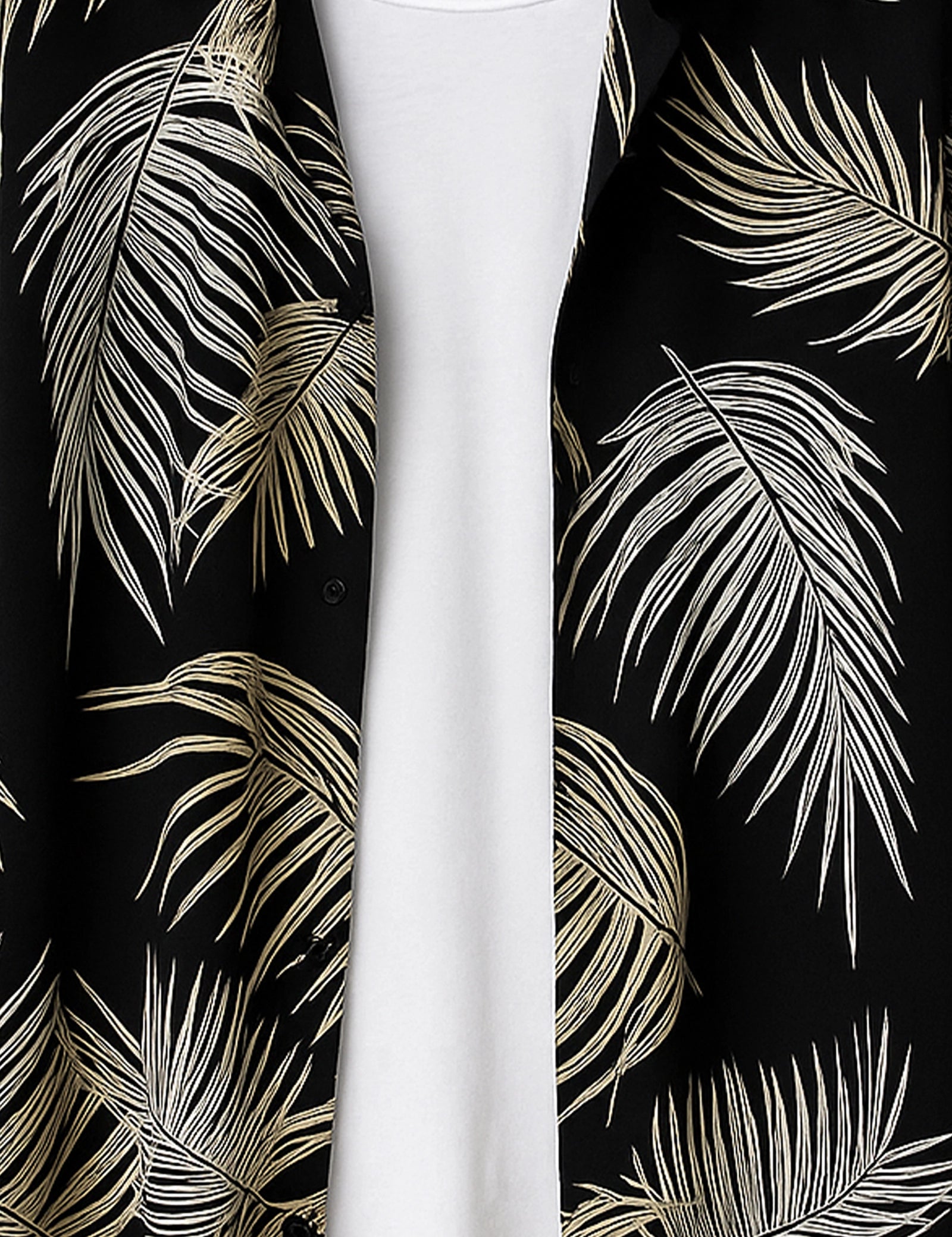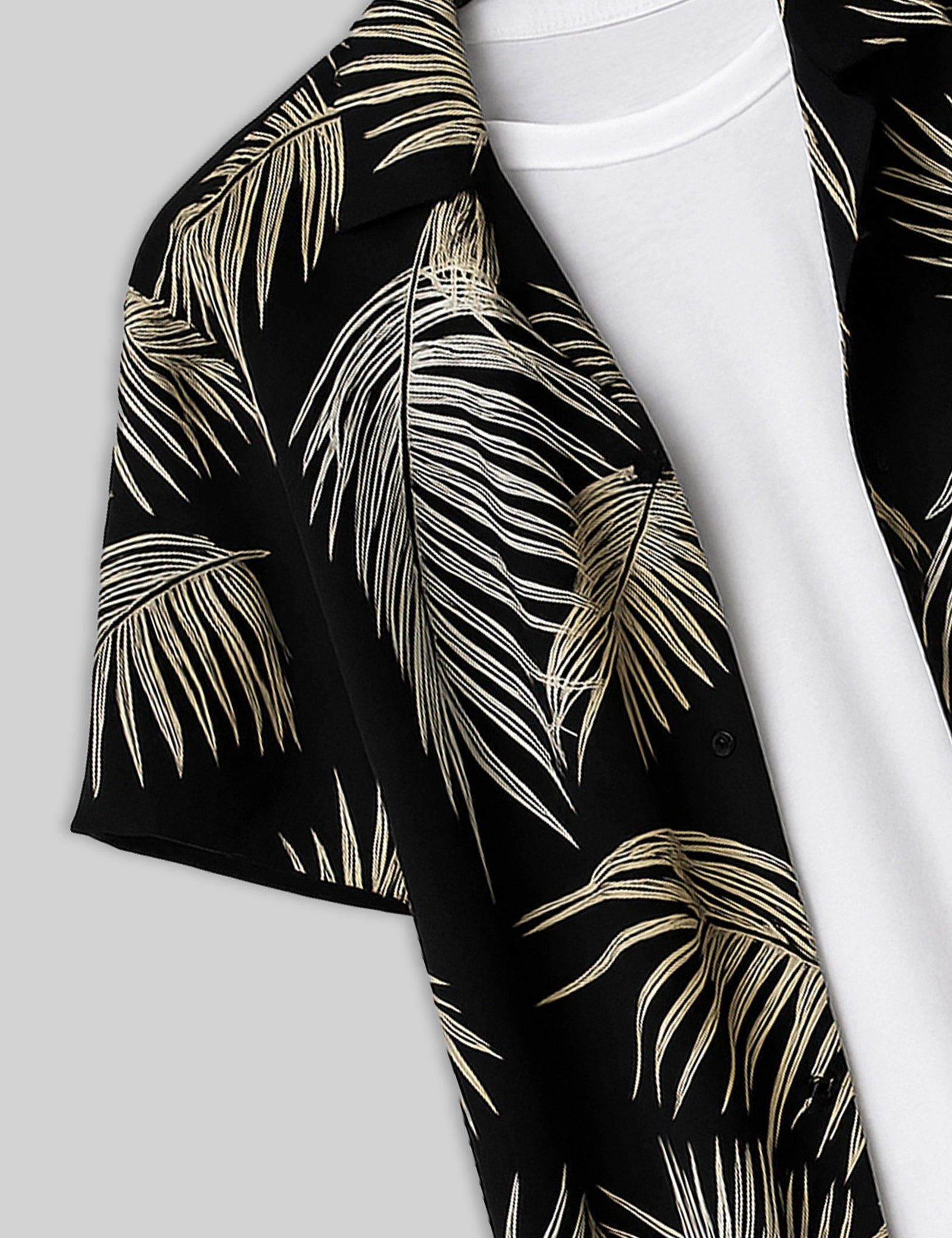 Black Leaves Design | Men's Half Sleeve Cotton Shirt - Stylish & Comfortable Casual Wear