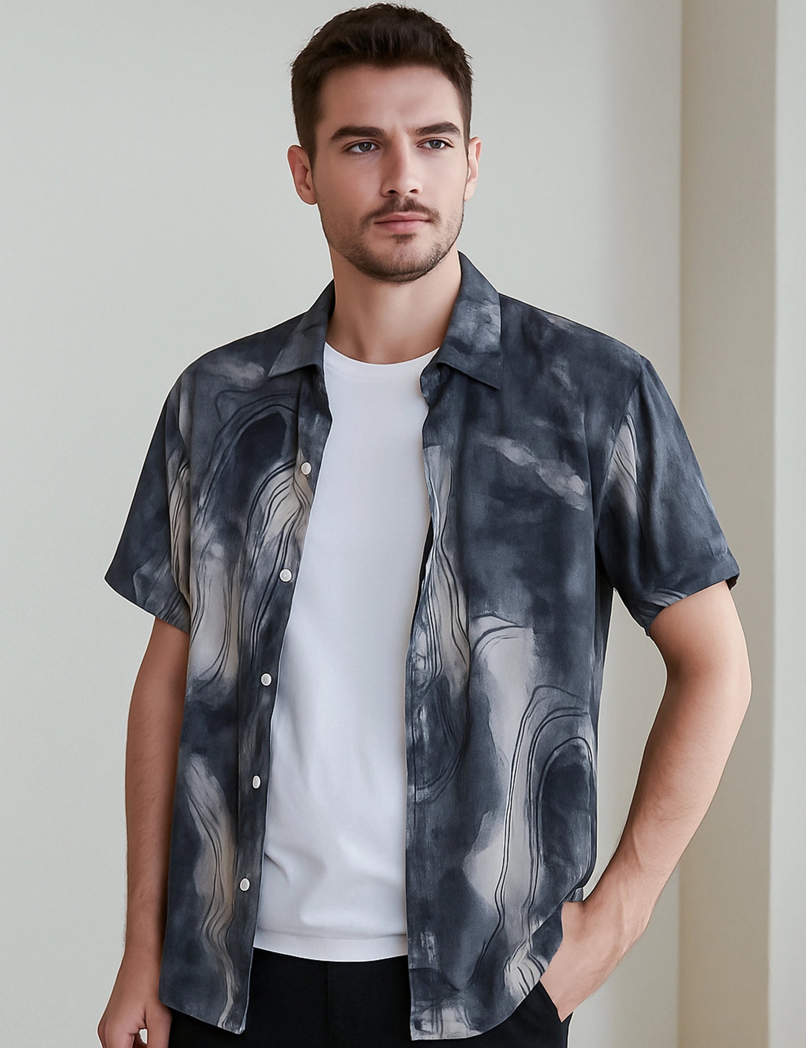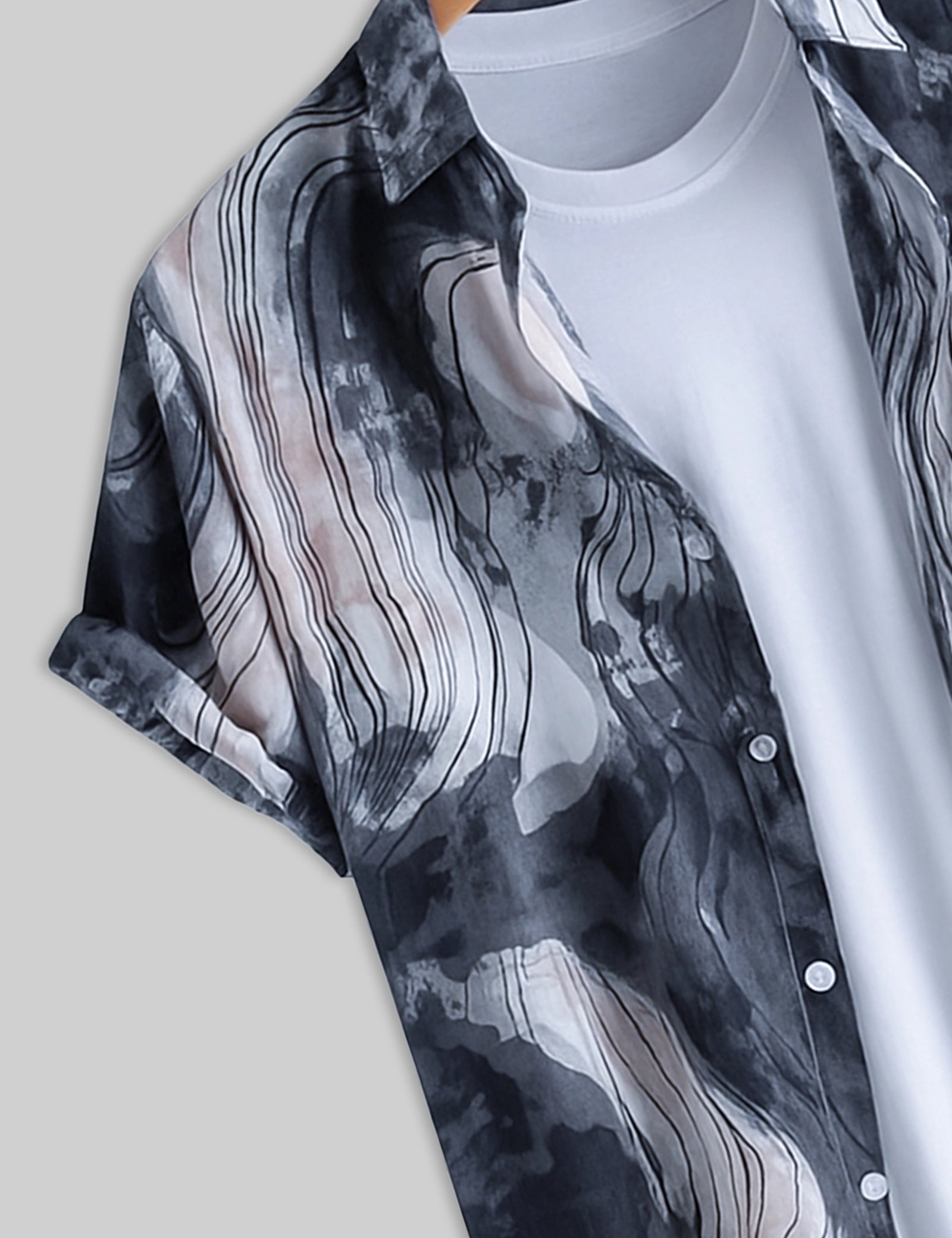 Black Liquid Design | Men's Half Sleeve Cotton Shirt - Stylish & Comfortable Casual Wear