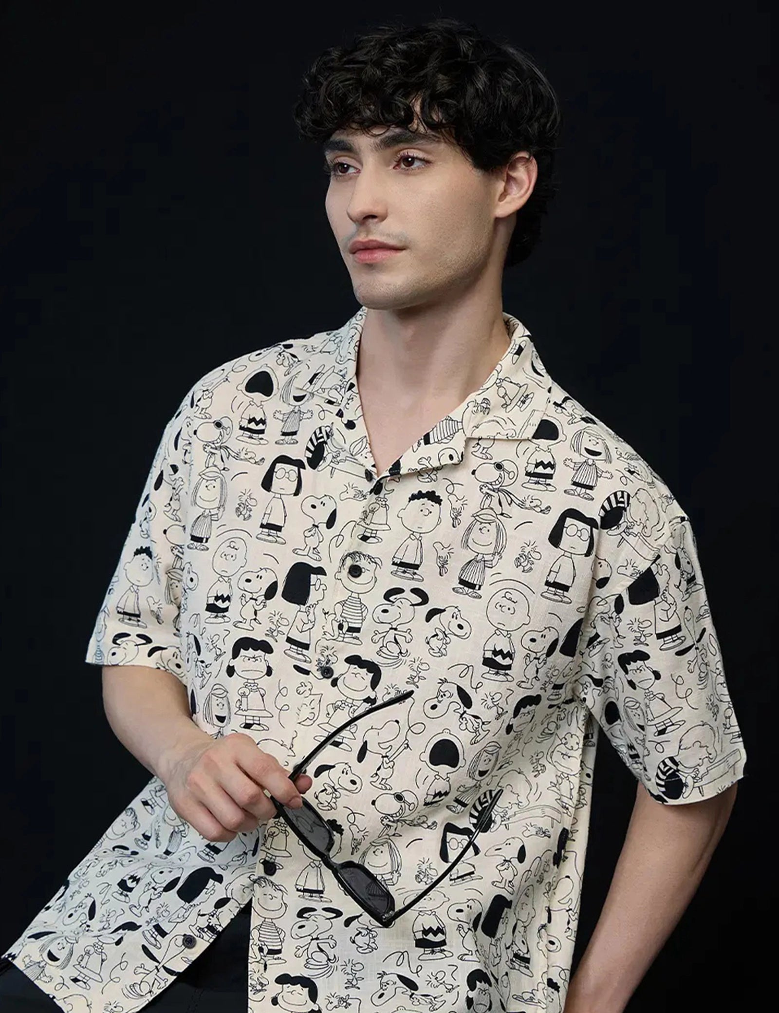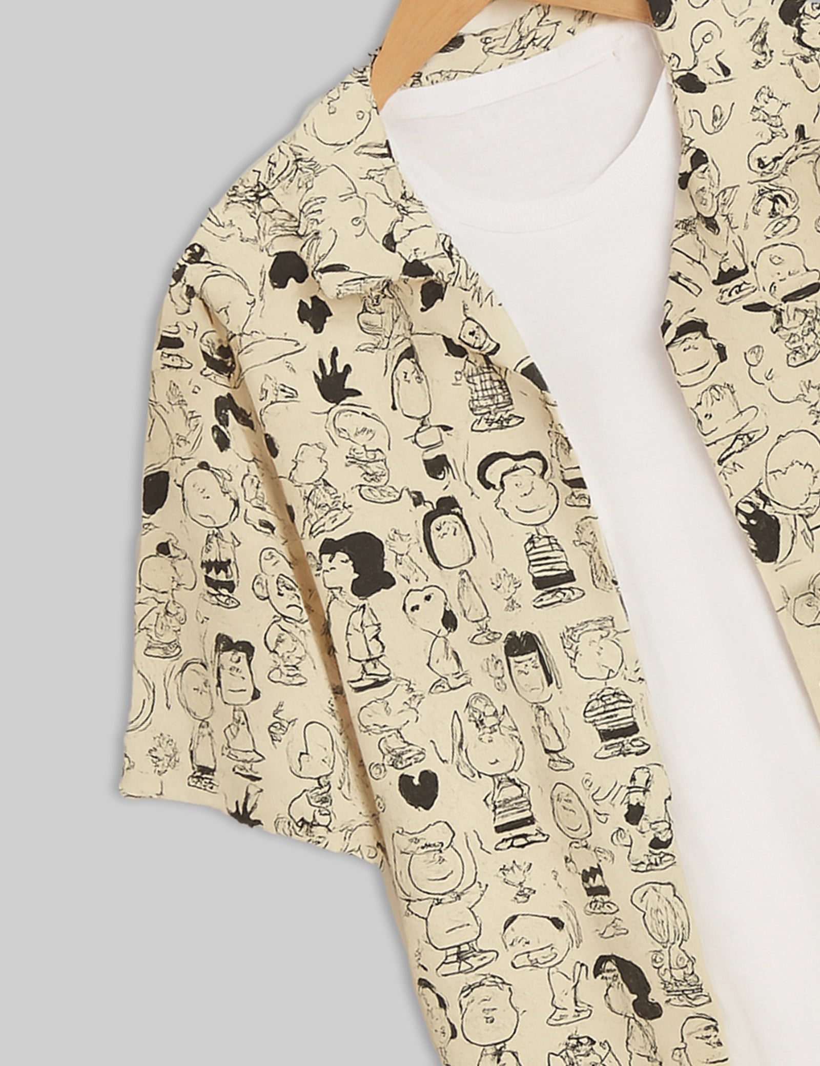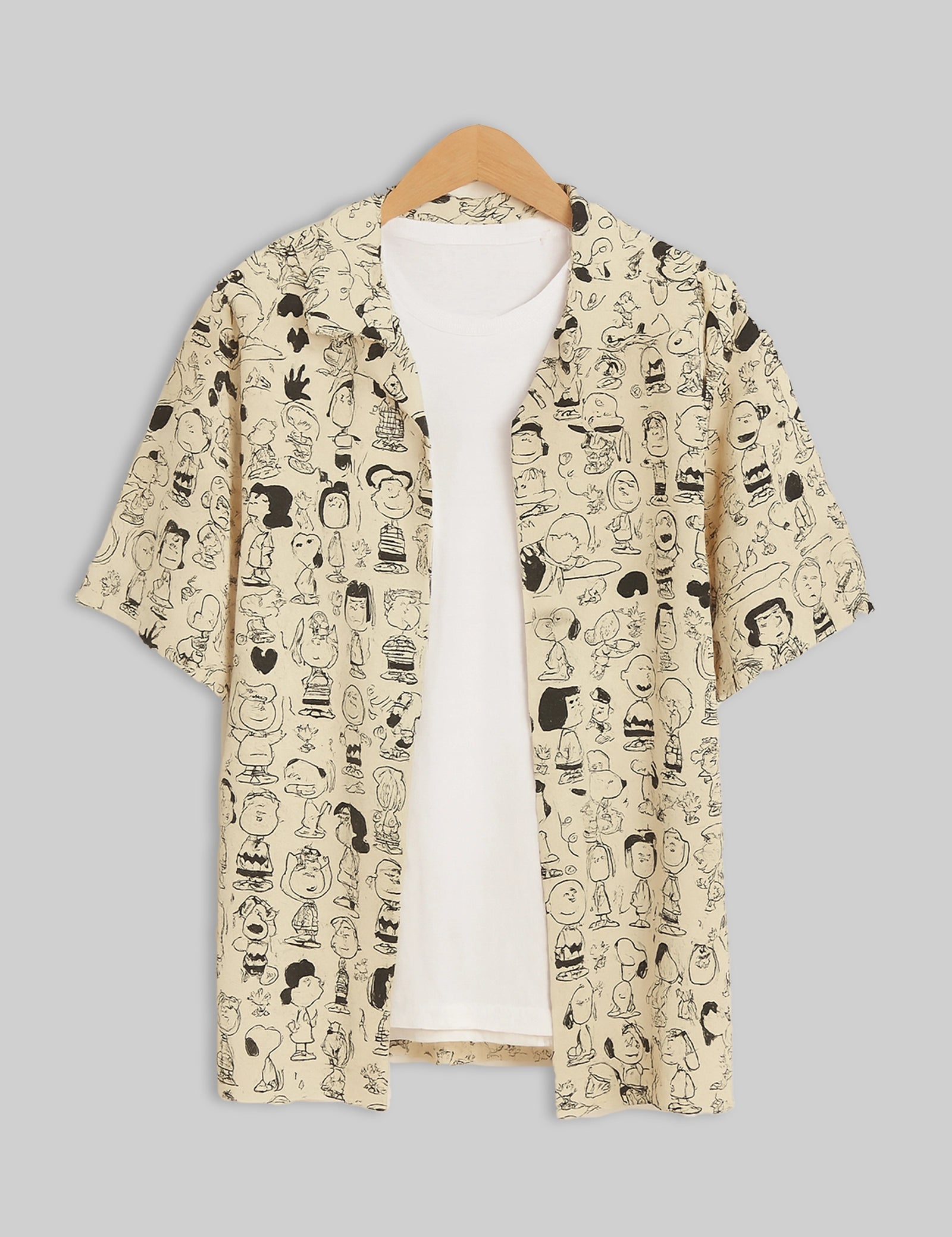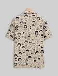 Cream Cartoon Design | Men's Half Sleeve Cotton Shirt - Stylish & Comfortable Casual Wear