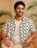 Diagonal Design | Men's Half Sleeve Cotton Shirt - Stylish & Comfortable Casual Wear