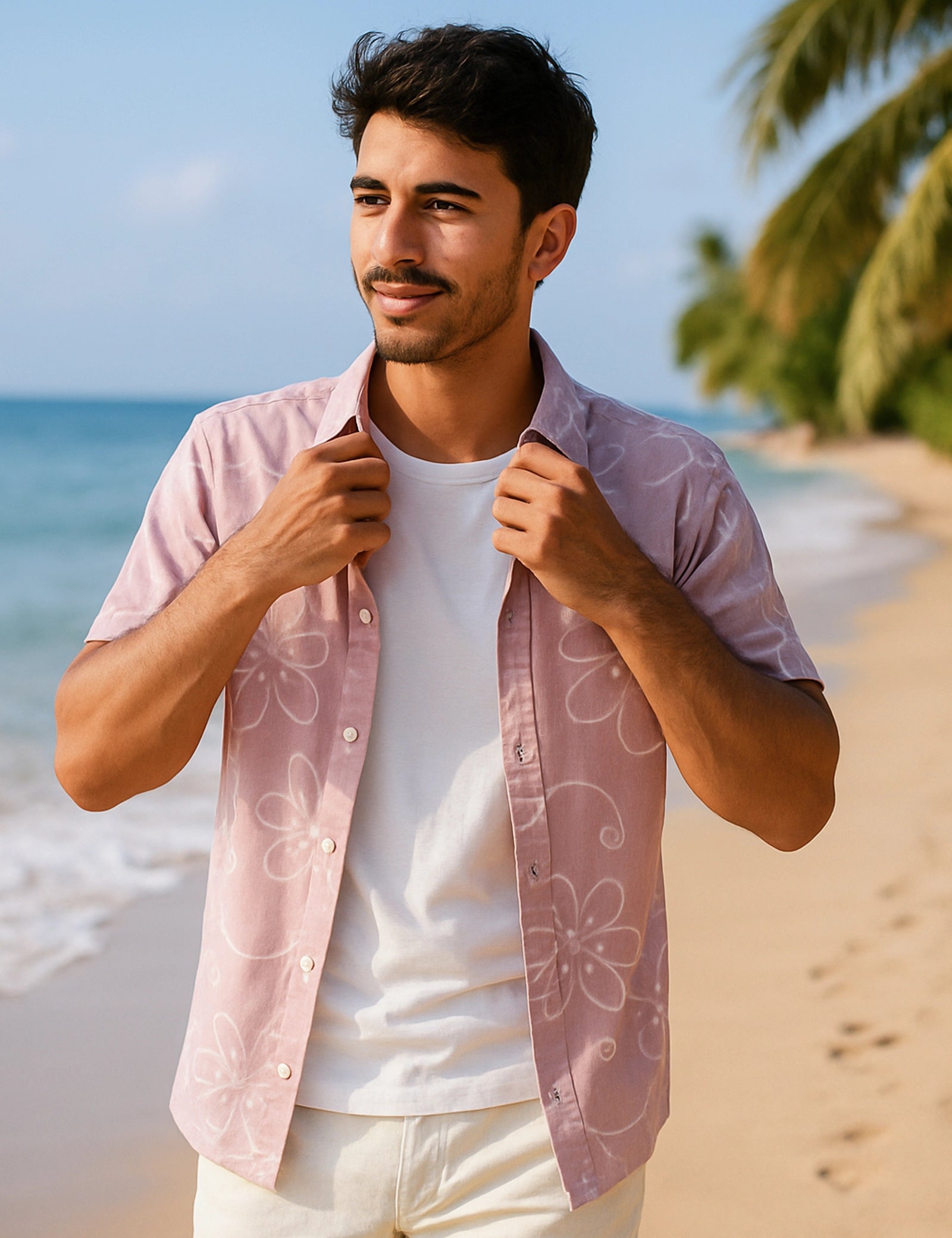 Floral Outline Design | Men's Half Sleeve Cotton Shirt - Stylish & Comfortable Casual Wear