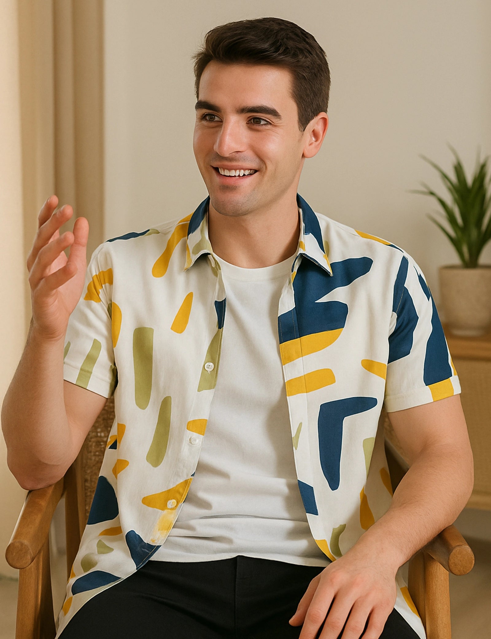 Geometry Design | Men's Half Sleeve Cotton Shirt - Stylish & Comfortable Casual Wear