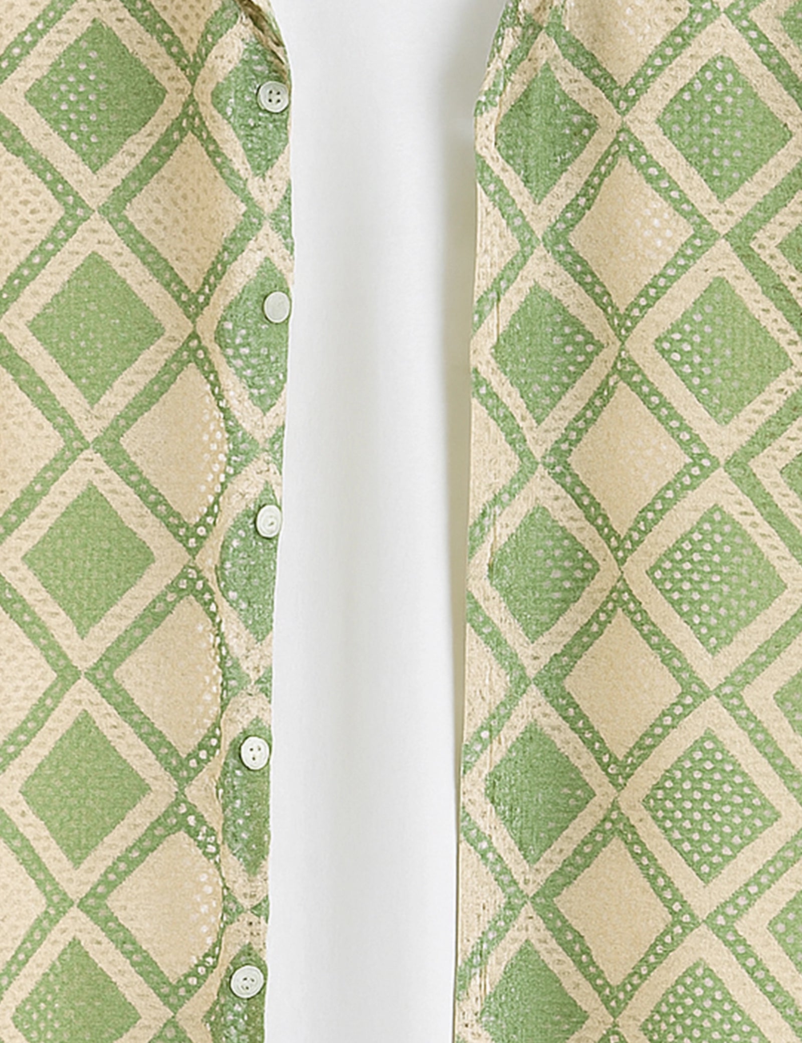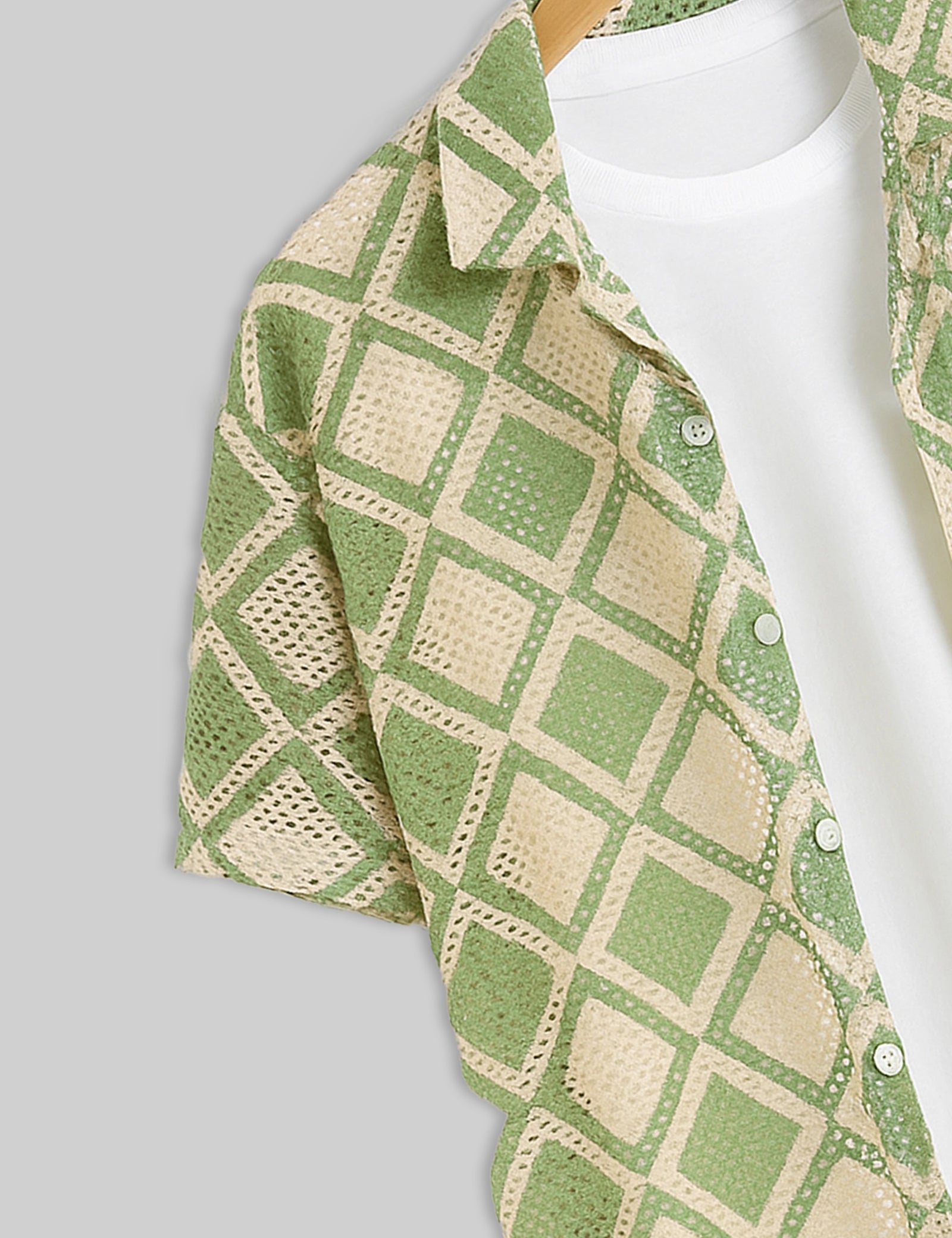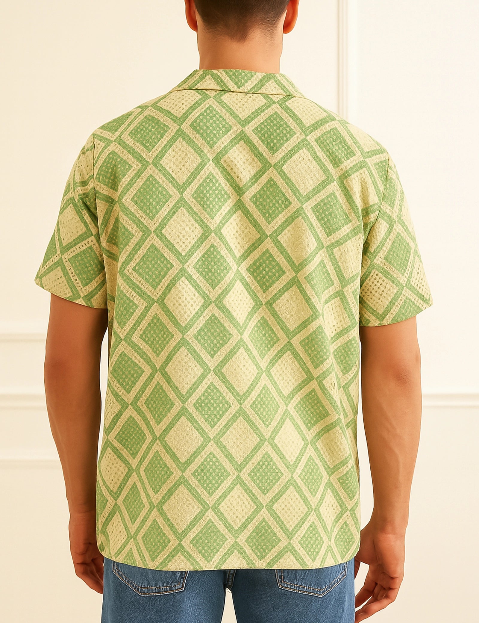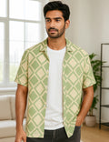 Green Diagonal Design | Men's Half Sleeve Cotton Shirt - Stylish & Comfortable Casual Wear