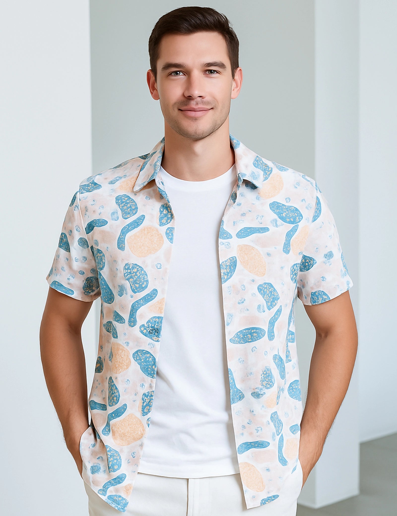 Micro Organism Design | Men's Half Sleeve Cotton Shirt - Stylish & Comfortable Casual Wear