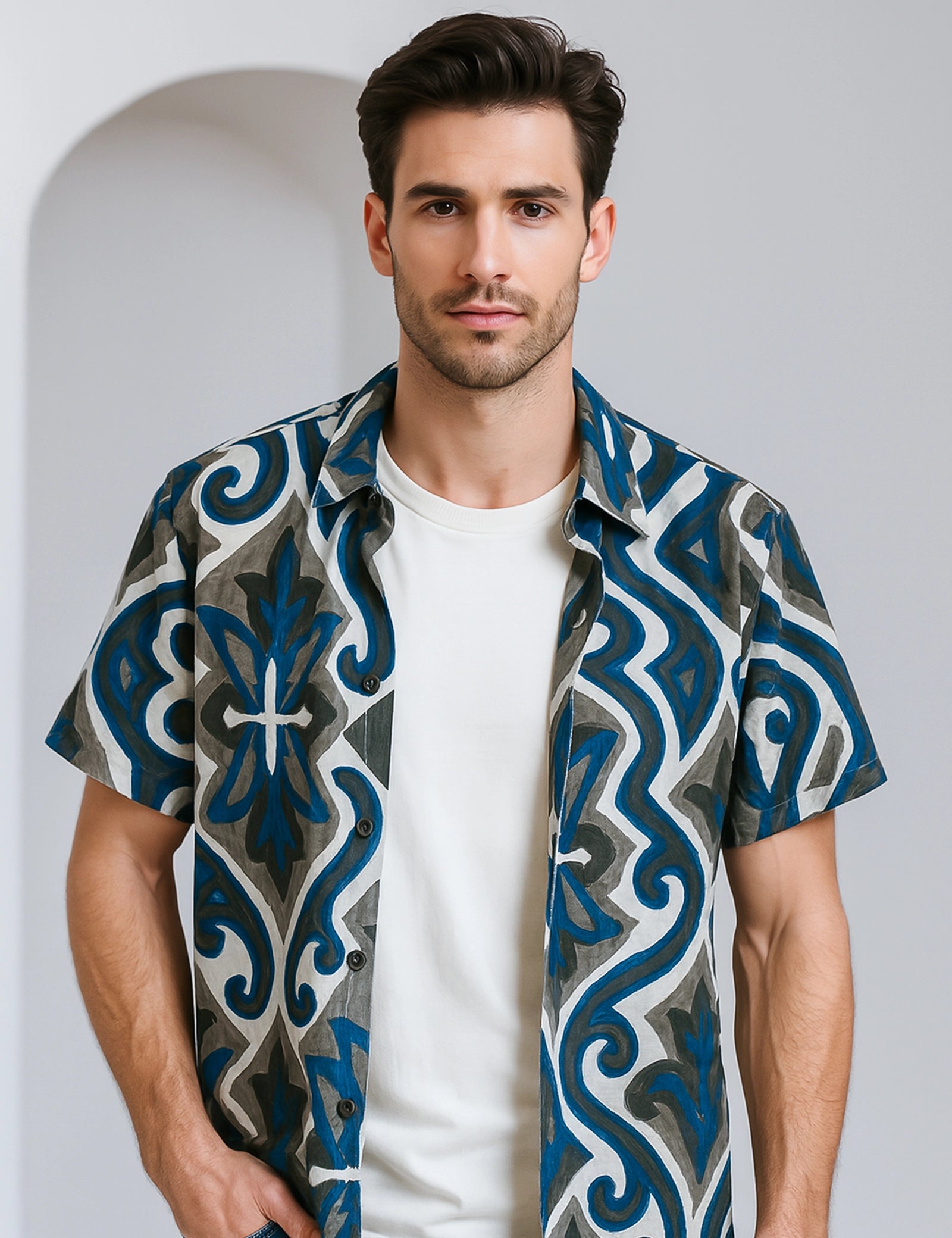 Mirror Effect Design | Men's Half Sleeve Cotton Shirt - Stylish & Comfortable Casual Wear