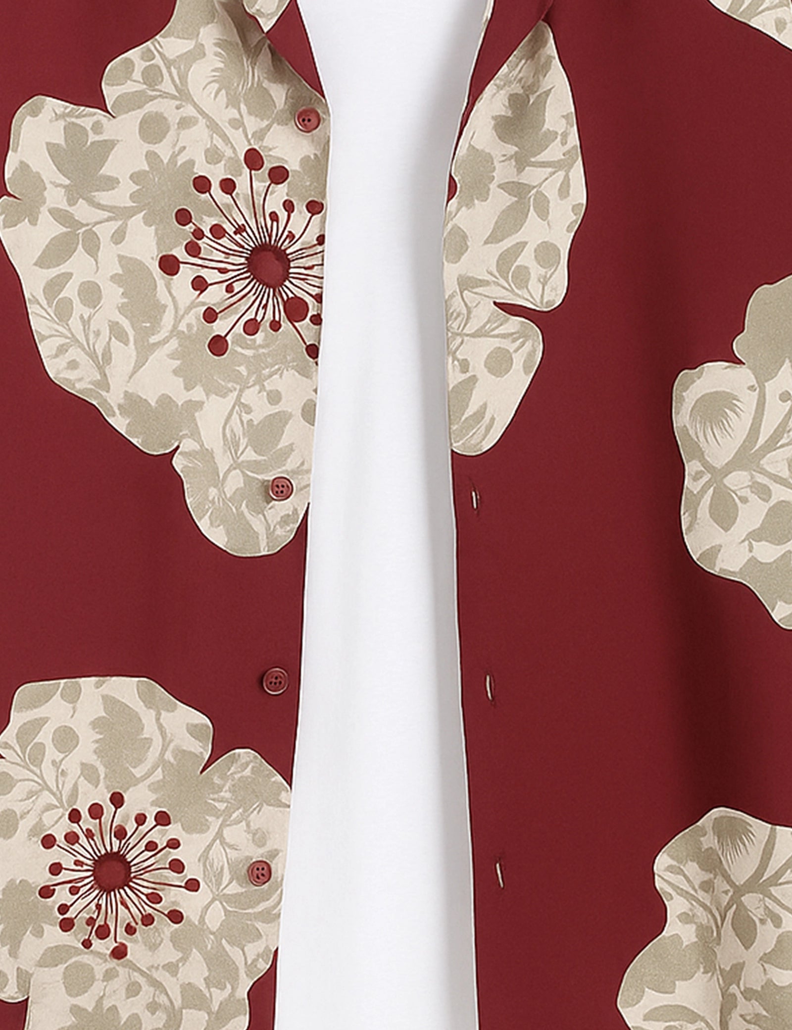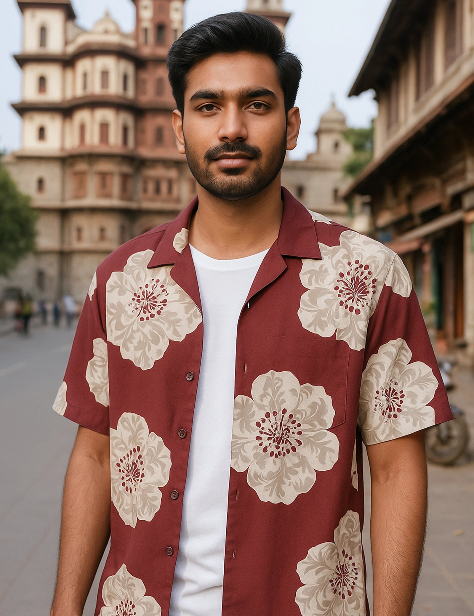 Red Flower Design | Men's Half Sleeve Cotton Shirt - Stylish & Comfortable Casual Wear
